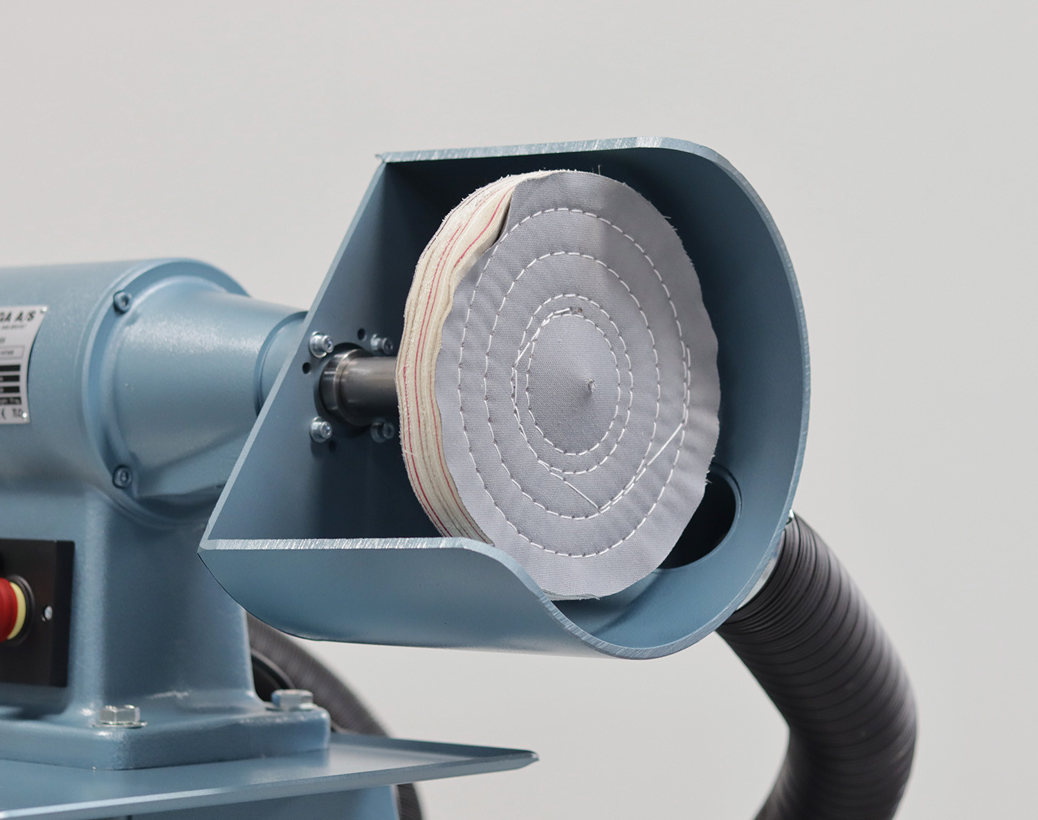 Grinder with grinding and polishing wheels and EX-16 dust extractor